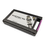 Only the housing of the original V3 remained. The entire internals – damper valves, rebound and compression configuration, high-speed and low-speed damping – were completely redesigned and precisely tuned to the characteristics of the 996. A key element: the patented KW valve technology, which we adapted to our needs in close cooperation with KW. This resulted in a setup that is unique – and available worldwide exclusively from Werk 96.